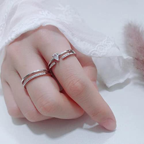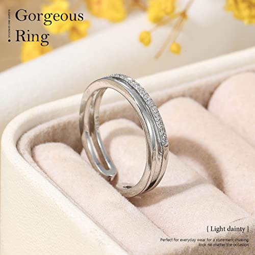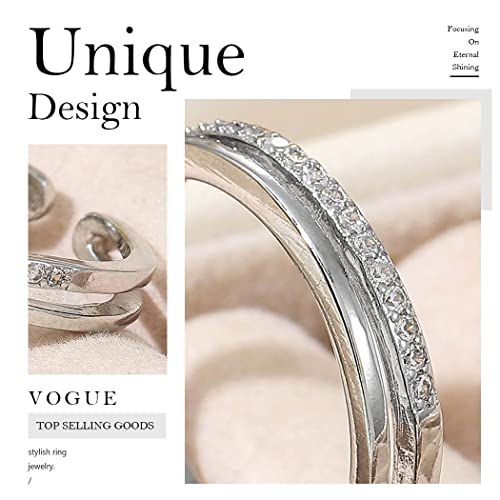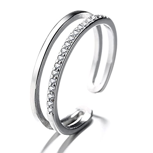 Aukmla Anello da donna Anello di fidanzamento in argento Anello aperto regolabile Fede nuziale con zirconi per donne e ragazze