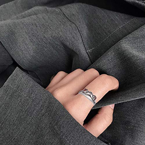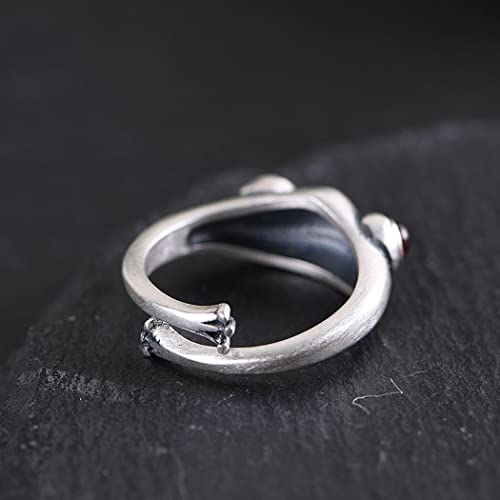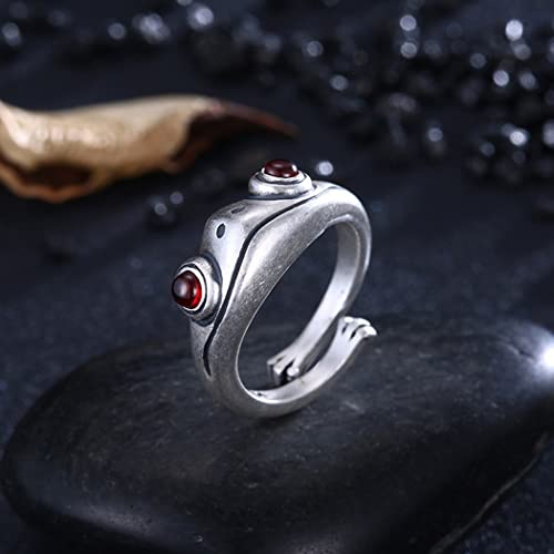 Aukmla - Anello a forma di rana con giada colore rosso granato, stile vintage retrò, in argento, regolabile, anello aperto, gioiello per donne e ragazze