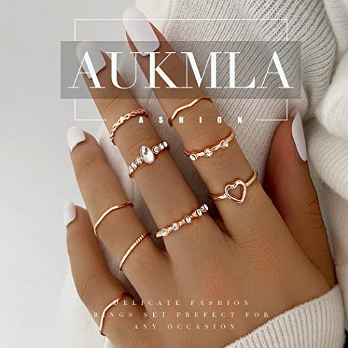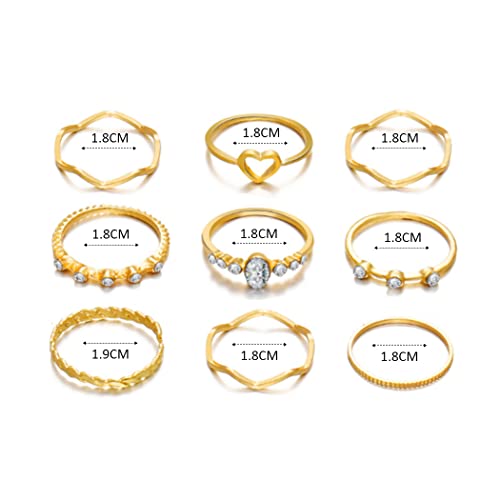 Aukmla Boho Set di anelli per le nocche Cuore d'oro Anelli per le dita impilabili Set di anelli per le nocche di medie dimensioni per donne e ragazze 9 pezzi