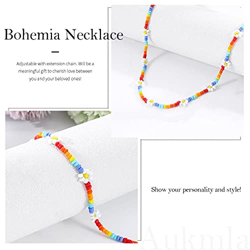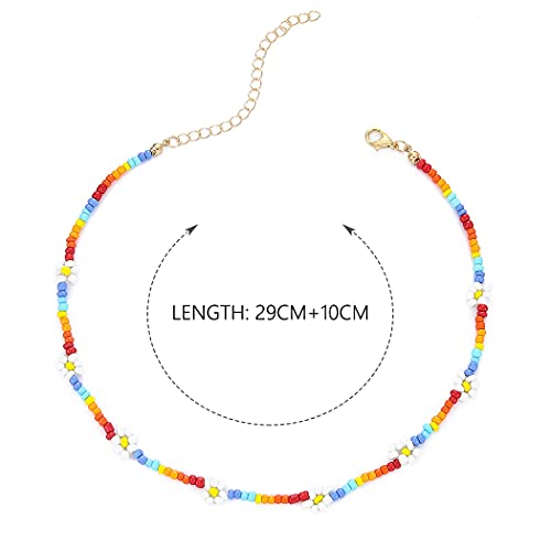 Aukmla Boho Collana girocollo Spiaggia di sabbia dorata Collane di fiori colorati Accessori per gioielli con perline a catena per donne e ragazze