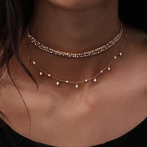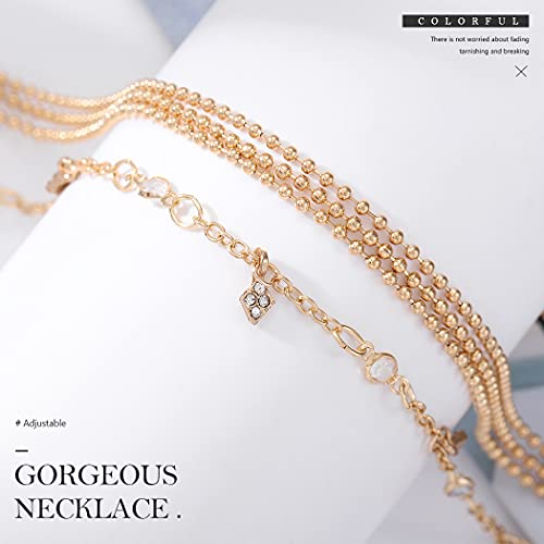 Aukmla Boho - Collana a strati in oro con cristalli e nappe, collana girocollo con perline per donne e ragazze