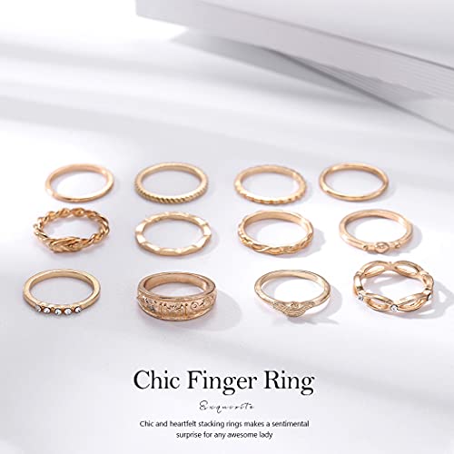 Aukmla Boho Knuckle Ring Set Oro Impilabili Anelli per dita Midi Size Joint Knuckle Ring Set per Donne e Ragazze 12 Pezzi