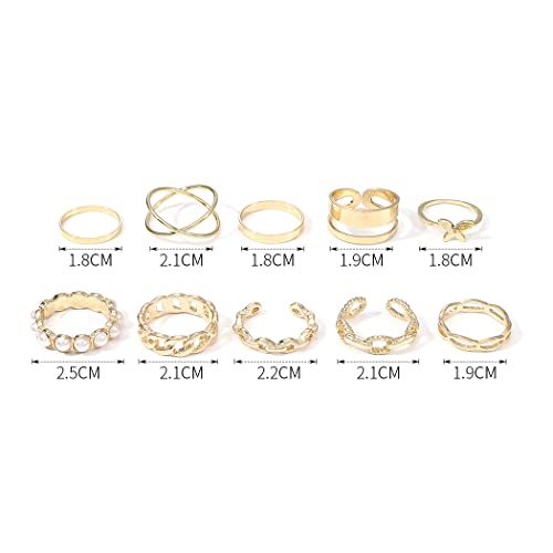Aukmla Boho Knuckle Ring Sets Gold Butterfly Stackable Finger Rings Pearl Midi Size Joint Knuckle Ring Sets for Women and Girls 10 Pieces