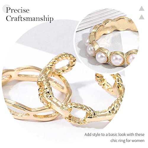 Il set di anelli intagliati è in oro e gli anelli di perle sono adatti a tutti i colori. Ti fanno ottenere più complimenti.