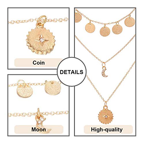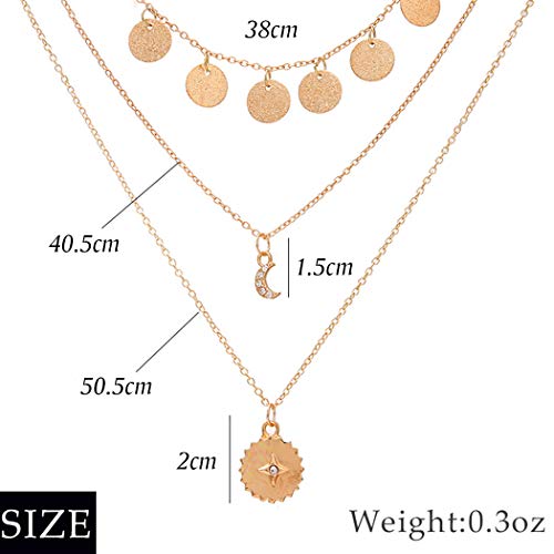 Aukmla Collana Boho a strati con ciondolo a forma di luna, in oro, per donne e ragazze