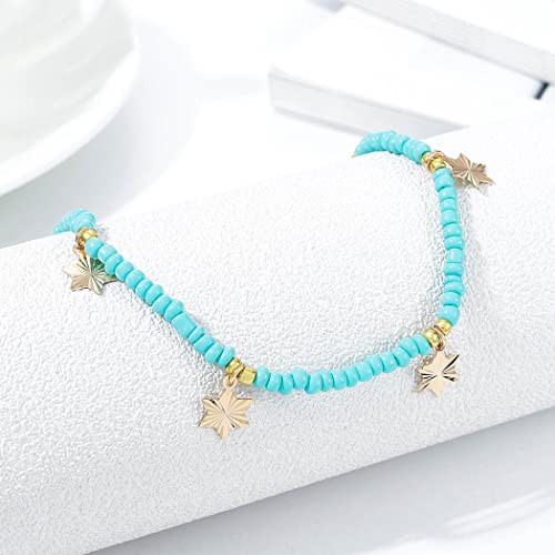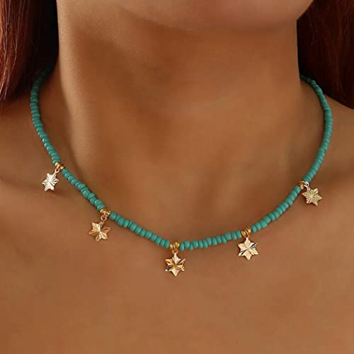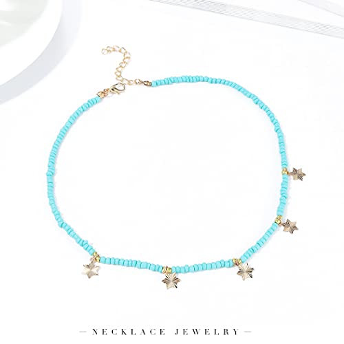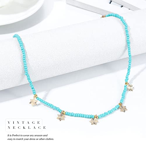 Aukmla Collana con perline Boho Collane con ciondolo stella d'oro Collana girocollo turchese con spiaggia sabbiosa per donne e ragazze