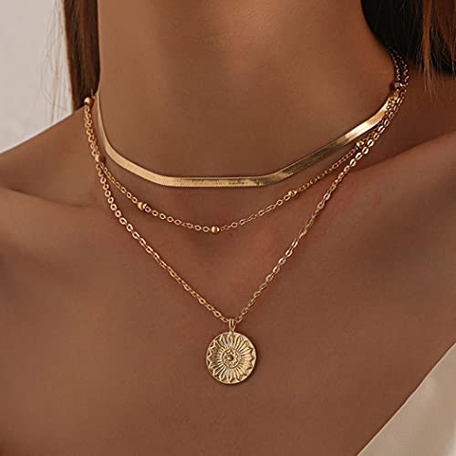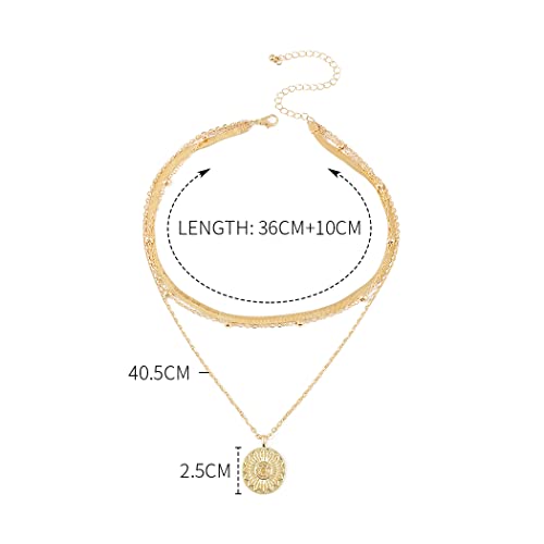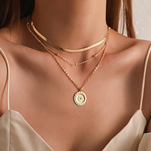 Aukmla Collana a strati Boho con ciondolo a moneta in oro, collana girocollo con perline per donne e ragazze