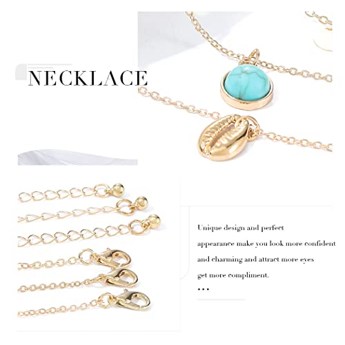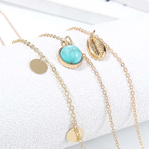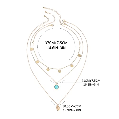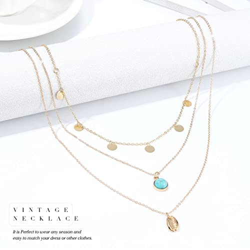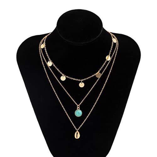 Aukmla Collana a strati Boho Collana con ciondolo turchese con conchiglia in oro Collana girocollo con paillettes a catena per donne e ragazze (confezione da 3)