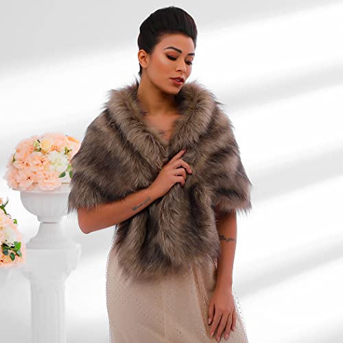 Aukmla Sposa Matrimonio Scialli di pelliccia sintetica Senza maniche Coprispalle e stole di pelliccia da donna Sciarpa di pelliccia da sposa con spilla per spose e damigelle (Marrone)