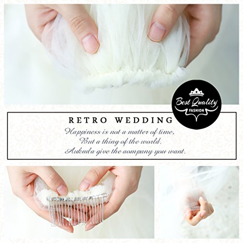 Aukmla, velo da sposa in morbido tulle, Fingertip, lunghezza al gomito, con pettine a due strati, velo da sposa con accessorio per capelli