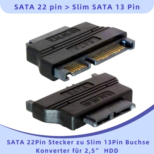 Aukson D32 - Adattatore SATA da 22 pin a 13 pin femmina convertitore per HDD da 2,5", colore: Nero