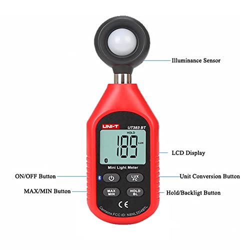 Aukson Q77C Digital Lux Misuratore di luce con schermo LCD per laboratorio Ufficio UT383BT Bluetooth