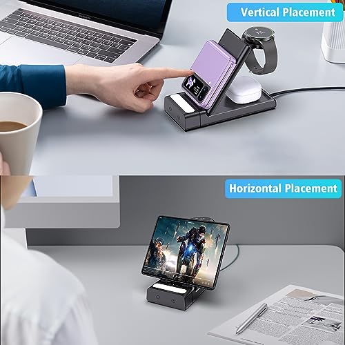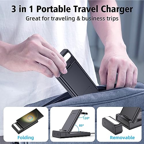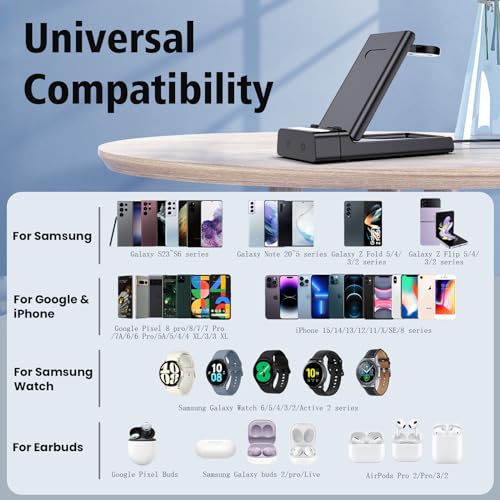 Aukvite per Samsung Caricatore Wireless Pieghevole con Luce Notturna, 3 in 1 Stazione di Ricarica Induttiva con Samsung S23/S22/S21/Phone 15/Z Fold 4, Samsung Ricarica per Galaxy Watch 6/5/4, Buds
