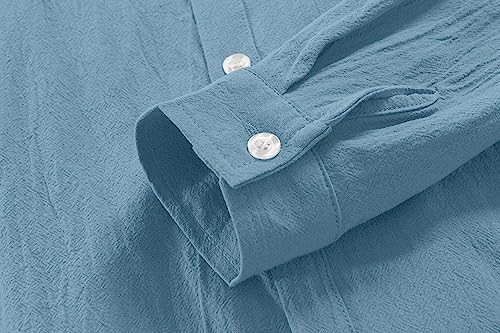 AUMELR Camicie da uomo in lino casual con bottoni Henley Camicie in cotone estivo da spiaggia camicia da nonno, Azzurro, 3XL