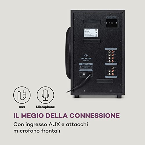 Auna Areal 825 - Sound System 5.1, Impianto Home Cinema 5.1, 200 Watt di Potenza RMS, Subwoofer Home Cinema da 8" + 5 Altoparlanti, Bluetooth, USB, SD, AUX, Telecomando incl., Nero