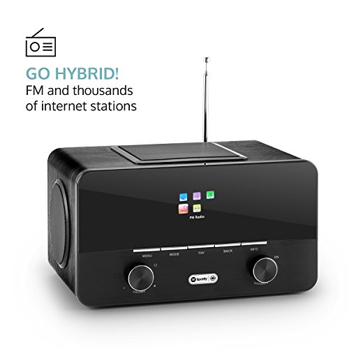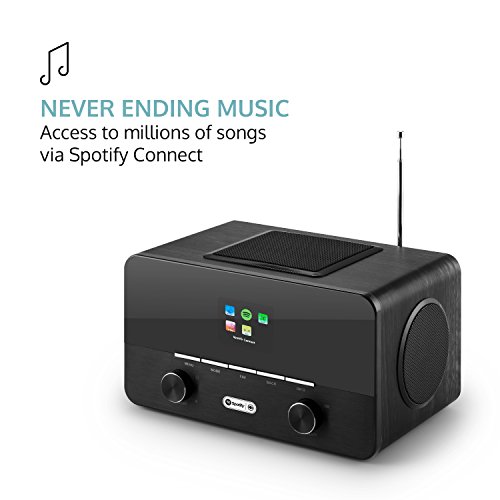 Auna Connect 150 BK 2.1 - Internet Radio, Radio Digitale, WLAN, Network Player, Wi-Fi, LAN, Dab/Dab+/ sintonizzatore UKW con RDS, Porta USB-MP3, Telecomando, Supporto in Legno, Nero