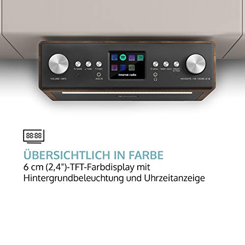 Auna Connect Soundchef - Radio Internet, Radio da Cucina, Radio Digitale sotto-Base, Dab +, FM, 2 Prese da 3", 10 stazioni preimpostate, Telecomando Incluso, Noce