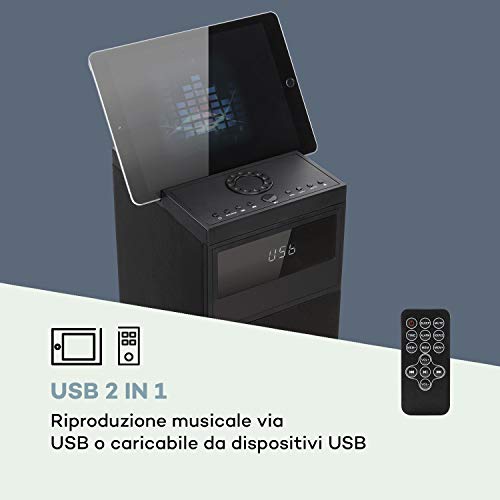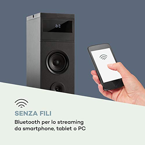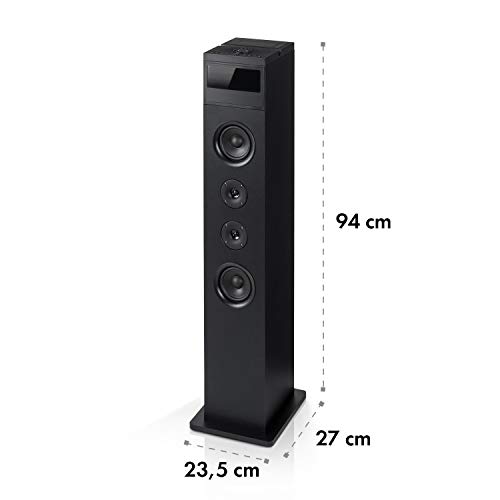 Auna Karaboom 100 - Sistema di Altoparlanti 2.1, a Torre, Diffusore da Pavimento, 120 Watt max, BT, Porta USB 2 in 1, MP3, AUX-In, Supporto Tablet, Nero