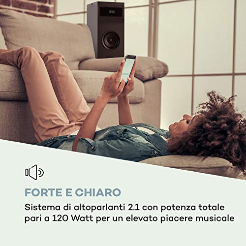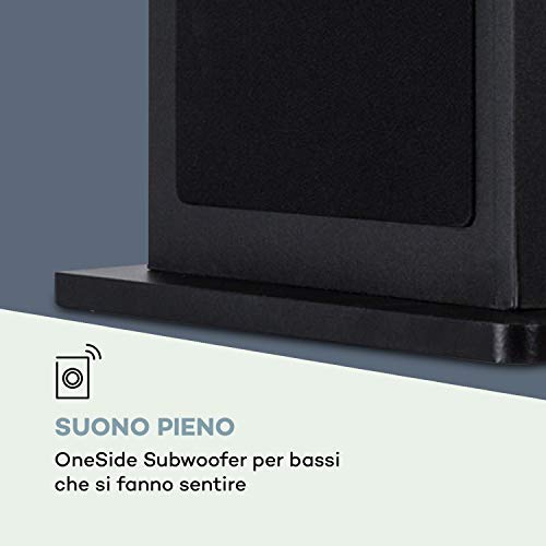 SUONO POTENTE: con una capacità di 120 watt max., i contenuti musicali sono riprodotti con un ottimo suono. Il subwoofer OneSide offre suoni straordinariamente bassi e che riempiono le stanze.
