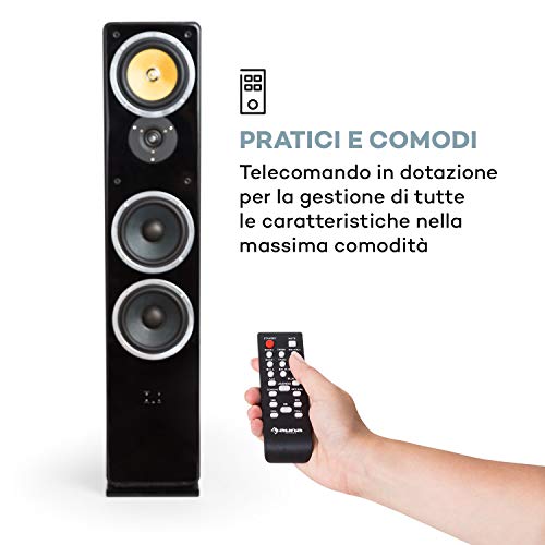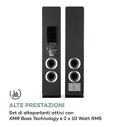 AUNA Line 700 A - Set di Altoparlanti da Pavimento Attivi, Bluetooth, Ingresso Digitale Ottico e Coassiale, Uscita AUX e Subwoofer, 240 W RMS BT, Colore Nero