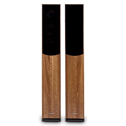 Auna Linie 501 FS - Coppia Altoparlanti a Torre, Diffusori da Pavimento, Altoparlanti Passivi, 3 Vie, Bass Reflex, Woofer 20 cm (8"), 2 Midrange 10 cm (4"), Tweeter 2,5 cm (1"), 140W RMS, Noce