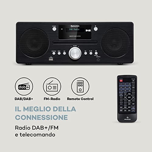 Auna Radio Portatile, Radio Dab con Bluetooth e Lettore CD, Radio FM/Dab/Dab+, Sistema Stereo AUX, Radio Dab Casa con Display TFT, Telecomando, Sveglia, MP3 e Porta USB, Radio Vintage in Legno 15W