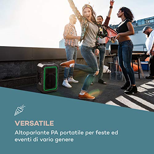 Auna Spencer Speaker PA Portatile - 60 Watt, Impermeabile secondo Standard IPX4, Woofer 10", Tweeter da 2,5", Bluetooth, USB, Batteria, AUX-IN, 2 Ingressi Microfono/Chitarra, Nero/Grigio
