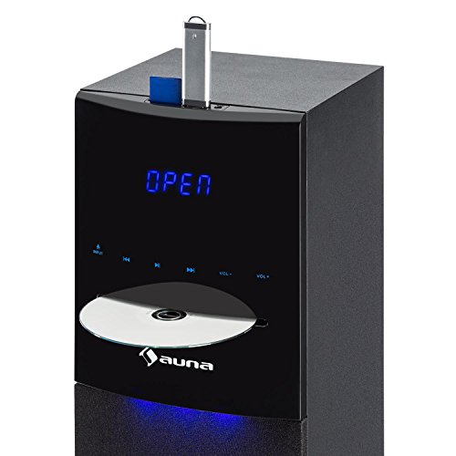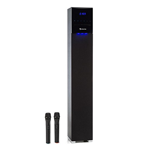 Auna Tallboy - Speaker, Sistema Karaoke, Bluetooth, Altoparlanti Hi-Fi, Lettore CD, Porta USB USB e Slot SD MP3, Ingresso AUX, 2 x VHF Microfono Wireless, Telecomando, LED Blu, Nero