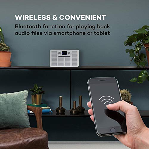 AUNA Vertico - Web Radio con Lettore CD, Internet SmartRadio: WiFi/DAB+/FM, Lettore CD Slot-In, Bluetooth, App-Control con UNDOK, Display HCC da 2,4", Bianco