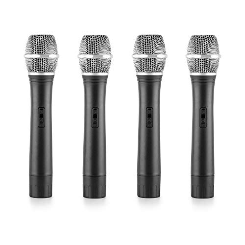 Auna VHF-4-H 4 x Radiomicrofoni Wireless VHF con Ricevitore (4 Canali, Copertura 50 metri, 4 Microfoni a Cono, Uscita Jack, 2 Antenne Telescopiche) Nero