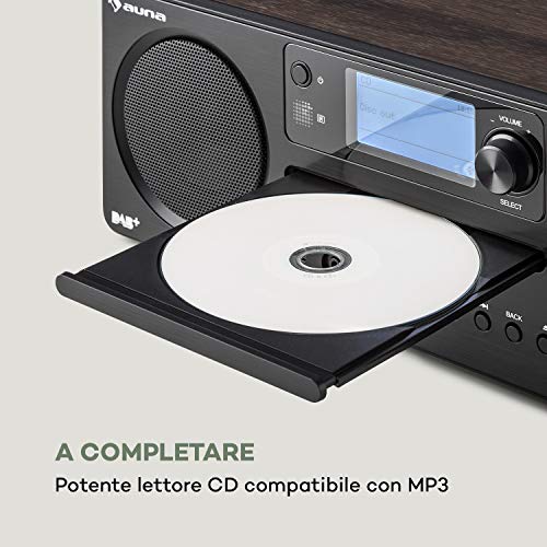AUNA Worldwide CD - Radio Internet Bluetooth, Radio Dab Casa, Lettore CD e sintonizzatore DAB/DAB +, Radiosveglia, USB, Spotify, AUX, Noce