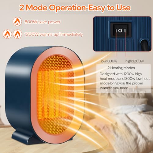 【2 Modalità di Funzionamento-Facile da Usare】Il mini riscaldatore spaziale progettato con 2 livelli di velocità dell'aria: modalità di calore alto 1200W, modalità di calore basso 800W.Le marce possono essere regolate dai pulsanti sul retro, basta premere il pulsante, facile da usare, in grado di soddisfare le diverse esigenze di riscaldamento.Questo rende questo compatto plug in termoventilatore ideale per il riscaldamento personale in case e uffici.