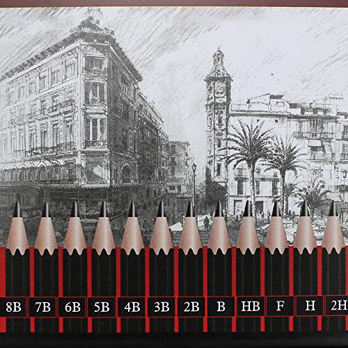 Matite varie:Il design a doppia estremità delle matite colorate è comodo per disegnare e colorare rapidamente, in totale 24 colori per la tua avventura artistica. Ci sono matite per schizzi di diversa durezza nel set per le tue esigenze da molto morbide a molto dure: 2H, H, F, HB, B, 2B, 3B, 4B, 5B, 6B, 7B, 8B.