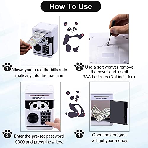 Auped panda Salvadanaio elettronico password, salvadanaio mini bancomat salvadanaio, Banca dei Soldi delle Password per Contanti Monete Bancomat Mini Monete Migliori Regali per Bambini (panda)