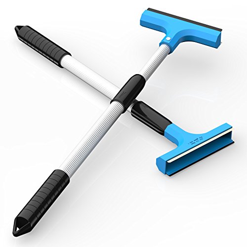 AUPROTEC Raschietto per Ghiaccio telescopico Ultra-Light con Lama di Ottone e Lamina di Gomma con Asta telescopica allungabile sensa gradini - Colore: Blu
