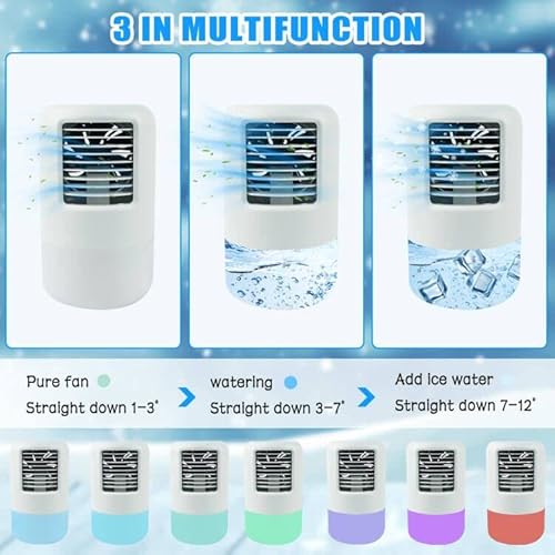 Auptiz Condizionatori portatili,Condizionatore Portatile,Climatizzatore Portatile,Mini Raffreddatore,Air Cooler con 3 in 1,7 colori di luce,con funzione timer,3 velocità del vento