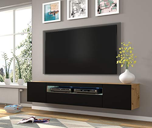 Aura, mobile Lowboard per TV da 200 cm, da appendere o da posizionare in verticale, universale, mobile Hi-Fi, mobile per televisore (rovere artigianale e nero opaco, senza LED)