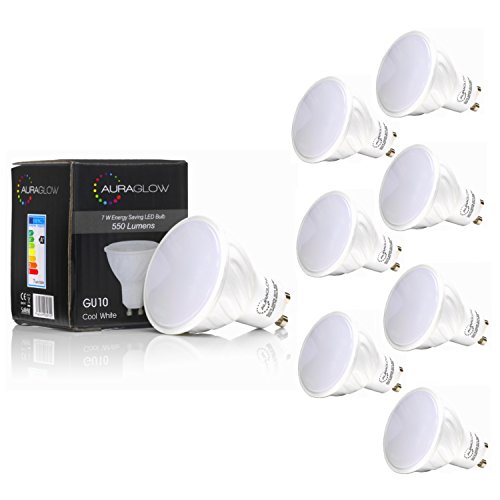AURAGLOW Lampadina Super Bright 7W LED GU10, Bianco Giallo Cool 6500k - RETROFIT - 550 lumen - 70w EQV - Eight Pack