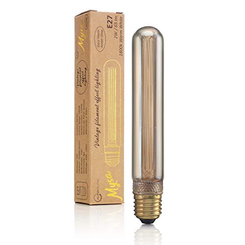 Auraglow Mysa Lampadina LED - Effetto Filamento Vintage Decorativo con Rivestimento Anti-Abbagliamento in Rame - E27 Forma del tubo T30