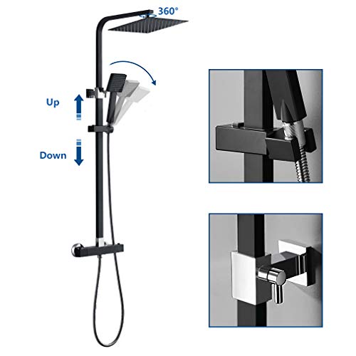 Auralum Ares X098 Colonna Doccia con Miscelatore Termostatico, Nero, Set Doccia, Soffione 25cm, Altezza Regolabile