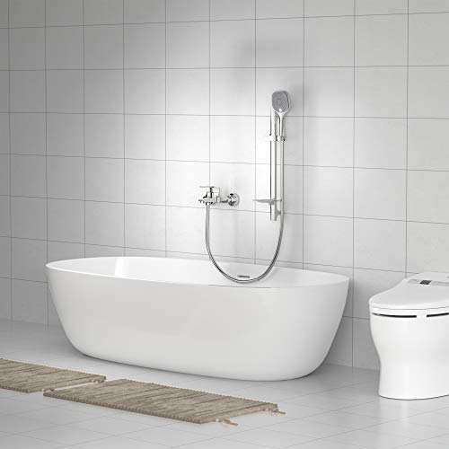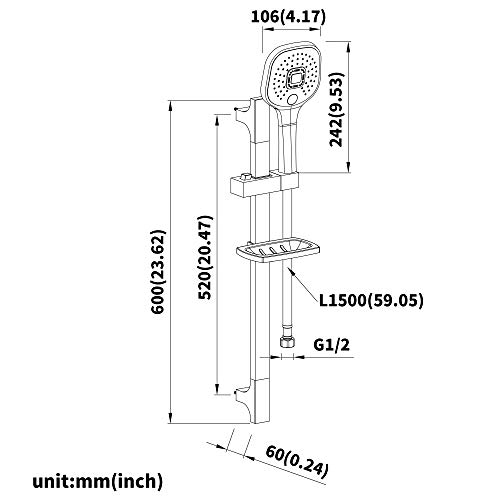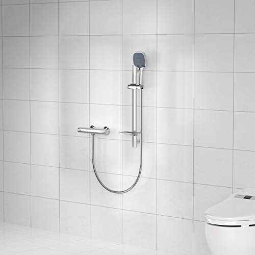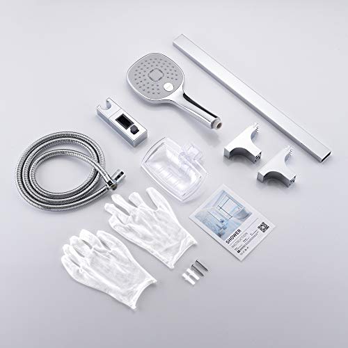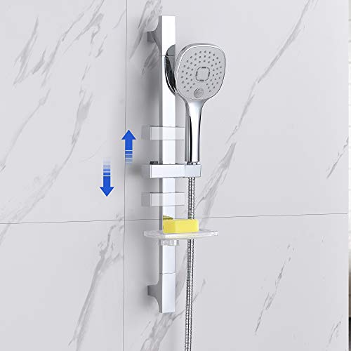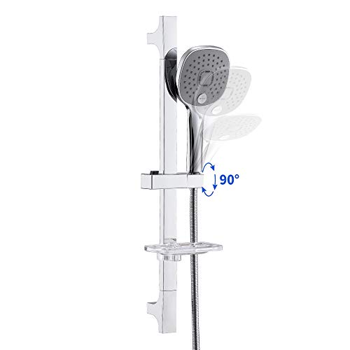 Auralum Set Asta Doccia Con Doccetta a 3 Getti e Portasapone, Tubo Flessibile Doccia 150 cm, Quadrato Saliscendi Doccia Acciaio Inox Senza Miscelatore, Cromato