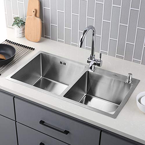 Auralum lavello cucina in acciaio inox 55x45 con strato anticoagulante e antigelo e fori di installazione del rubinetto, con contenitore per sapone