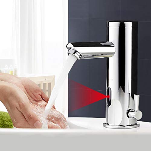 Auralum Rubinetti Bagno Sensore Infrarossi Automatico Miscelatore Rubinetto Lavabo Infrarossi Automatico Acqua Calda Fredda in Ottone Cromo