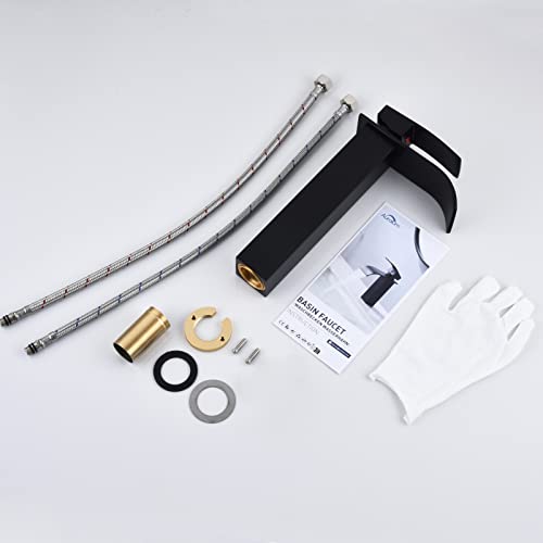 Auralum Rubinetto Bagno Lavabo Cascata Nero, Miscelatore Alto Altezza Bocca 204mm per Lavabo Appoggio in Ottone, Rubinetti Monocomando Stile Moderno, Regolazione a Caldo e Freddo
