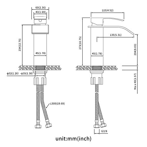 【MISCELATORE PORTATILE MONOCOMANDO PER LAVABO】Dotato di 2 tubi di alimentazione dell'acqua calda e fredda da 3/8" certificati DVGW standard. Si adatta alla maggior parte dei lavandini e può essere collegato a tutti i comuni sistemi di pressione dell'acqua calda e fredda. Adatto per scaldabagni istantanei, vasche idromassaggio e serbatoi di stoccaggio.