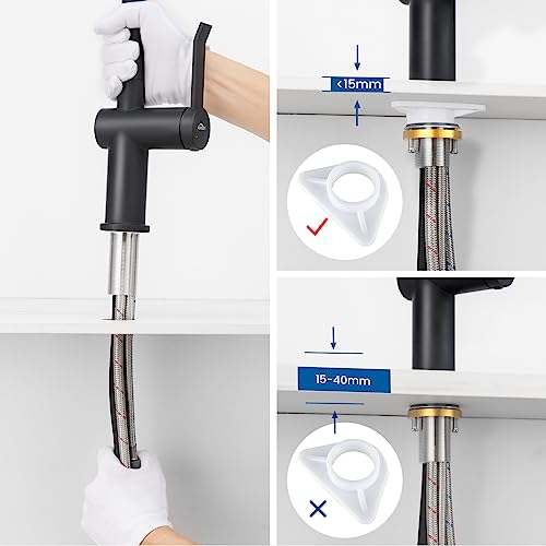 Proteggi La Tua Sicurezza Idrica: I tubi dell'acqua del miscelatore cucina nero senza piombo e i tubi PEX certificati KTW per uso alimentare sono sicuri e inodori. Utilizza cartuccia in ceramica KTW di alta qualità, non gocciola, ha una lunga durata, garantendo al contempo la sicurezza dell'approvvigionamento idrico.