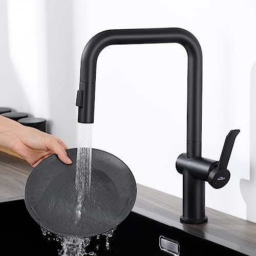 Auralum Rubinetto Cucina con Doccetta Estraibile, Miscelatore Cucina Nero Girevole a 360 °, 2 Modalità Rubinetti Cucina Lavello, Senza Piombo