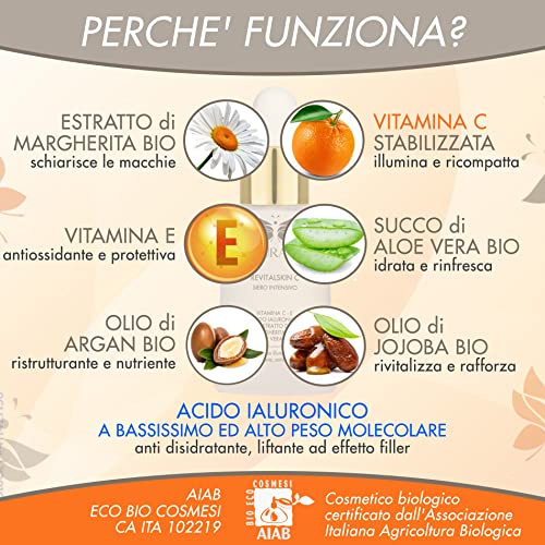 AURAM Siero Vitamina C Acido Ialuronico - REVITALSKIN Siero Viso Antirughe Bio Donna e Uomo, Illuminante, Antimacchia e Occhiaie, Serum Vitamin C con Aloe Vera - Made in Italy