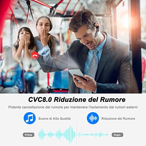 【CVC8.0 Cancellazione del Rumore】L'auricolare wireless combina microfoni HD incorporati e l'avanzata tecnologia di riduzione del rumore CVC8.0, fornendo un audio cristallino e un suono naturale, consentendo di godere di musica di alta qualità e chiamate chiare ovunque.