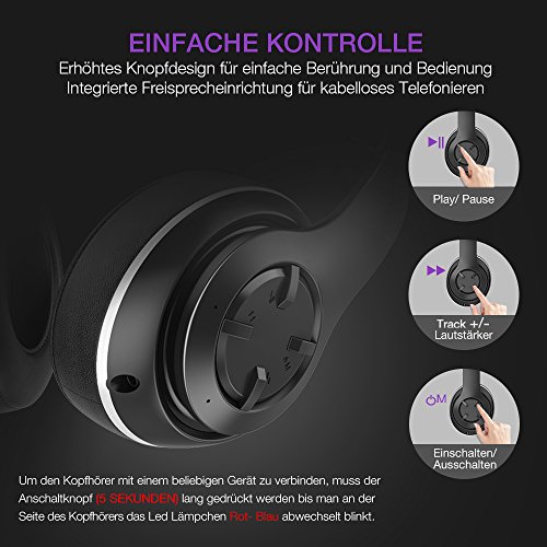 【 integrato Mic & Hands Free 】 il microfono integrato consente di effettuare telefonate con la cuffia.Così, la comunicazione semplice e chiara come mai (Bluetooth Portata fino a 33 ft)